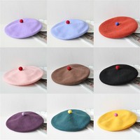 Kızlar sonbahar kış yün keçe sanatsal Vintage ressam şapka İngiliz sıcak katı renkler bereliler kapaklar