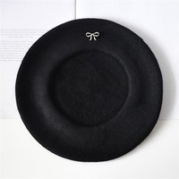 Toptan tatlı yönlü Retro moda sanatçı şapka yay dekorasyon düz yün bere kadınlar için
